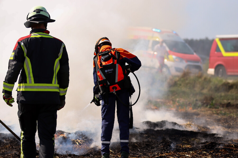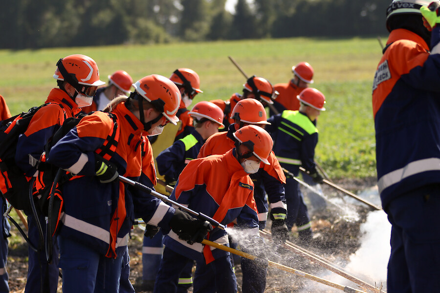 Die gemeinsame Mittagspause diente als weitere Verschnaufpause - sowohl für Jugendliche als auch Ausbilder. Kaum waren die Teller verräumt, ertönte erneut der Alarmierungston auf den Smartphones der Jugendlichen. In zwei verschiedenen Ortsbereichen der Großgemeinde kam es zu Flächenbränden, welche durch die jeweiligen Gruppen gut abgelöscht wurden.