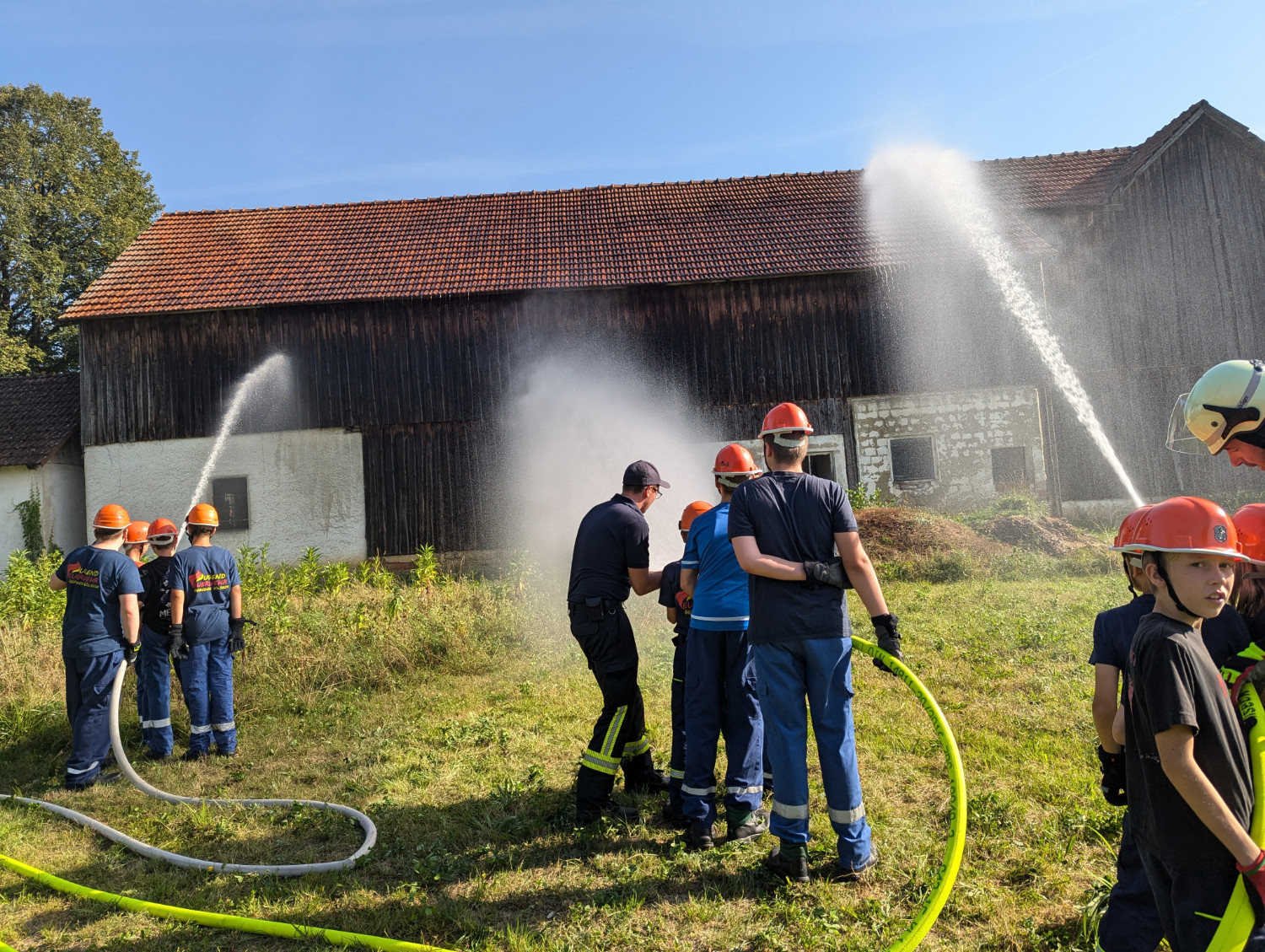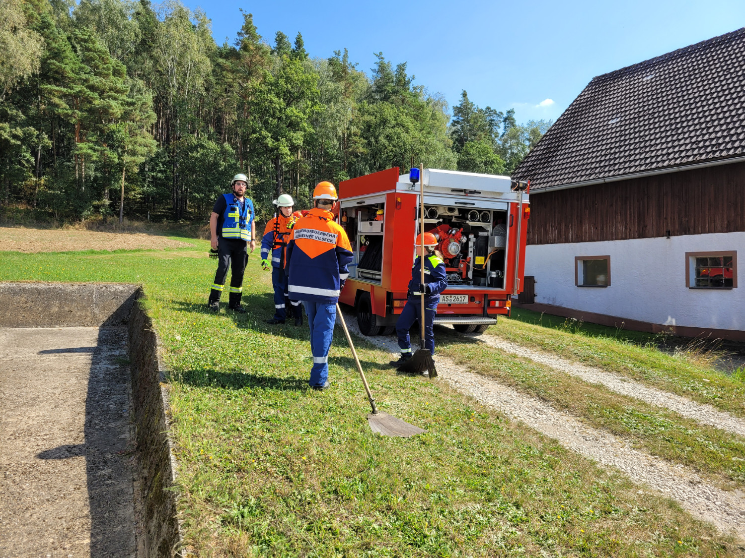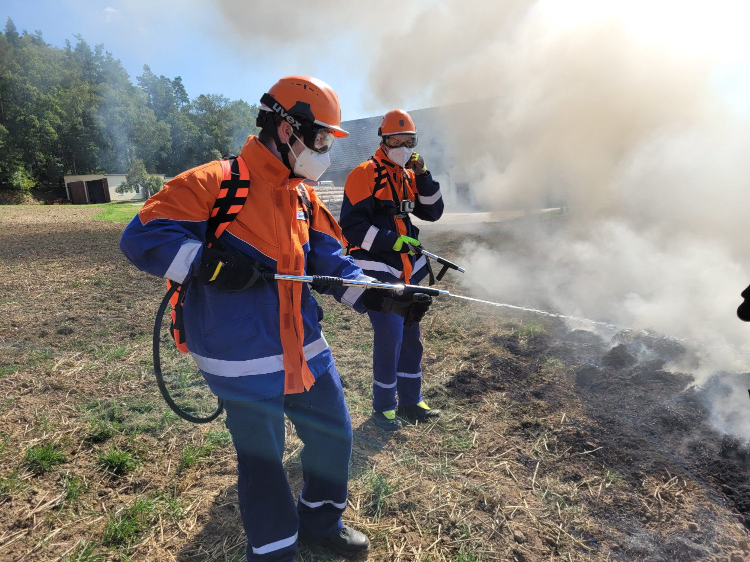 Die gemeinsame Mittagspause diente als weitere Verschnaufpause - sowohl für Jugendliche als auch Ausbilder. Kaum waren die Teller verräumt, ertönte erneut der Alarmierungston auf den Smartphones der Jugendlichen. In zwei verschiedenen Ortsbereichen der Großgemeinde kam es zu Flächenbränden, welche durch die jeweiligen Gruppen gut abgelöscht wurden.