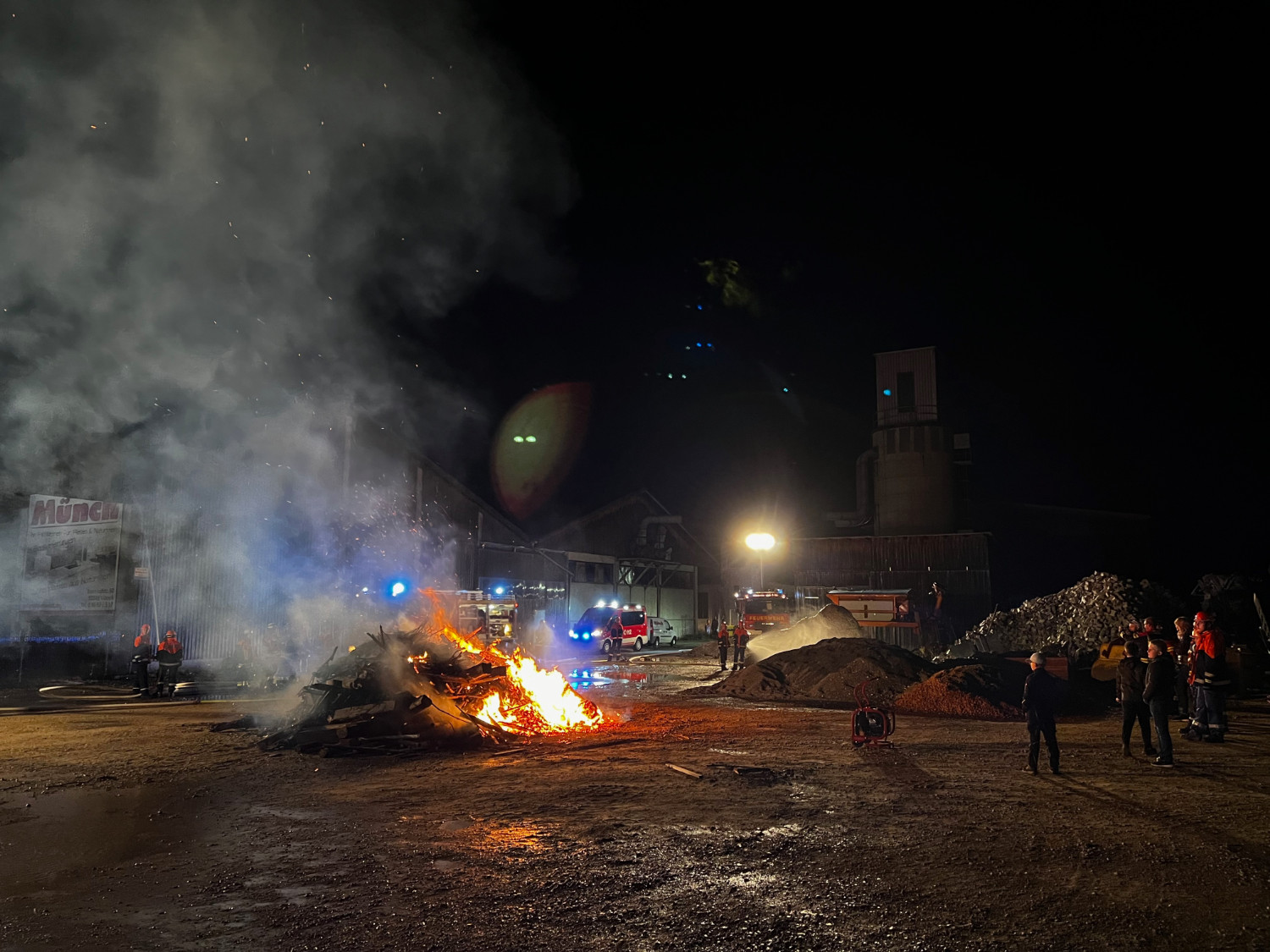 In kameradschaftlicher Gesellschaft konnten Ausbilder und die Jugendlichen der Gemeindejugendfeuerwehr Vilseck und die Gäste aus Freihung nach dem gemeinsamen Abendessen den Abend ausklingen lassen, spielten Spiele oder führten Unterhaltungen. Unterbrochen wurde der schöne Abend durch die Alarmdurchsage "Brand im Freien, drohender Übergriff auf Lagerhalle". Rasch waren die Fahrzeuge besetzt und der erweiterte Löschzug rückte zur Einsatzstelle aus. Vor Ort brannte ein großer Haufen Unrat, von dessen Wärmestrahlung ein Übergreifen auf eine angrenzende Lagerhalle drohte.