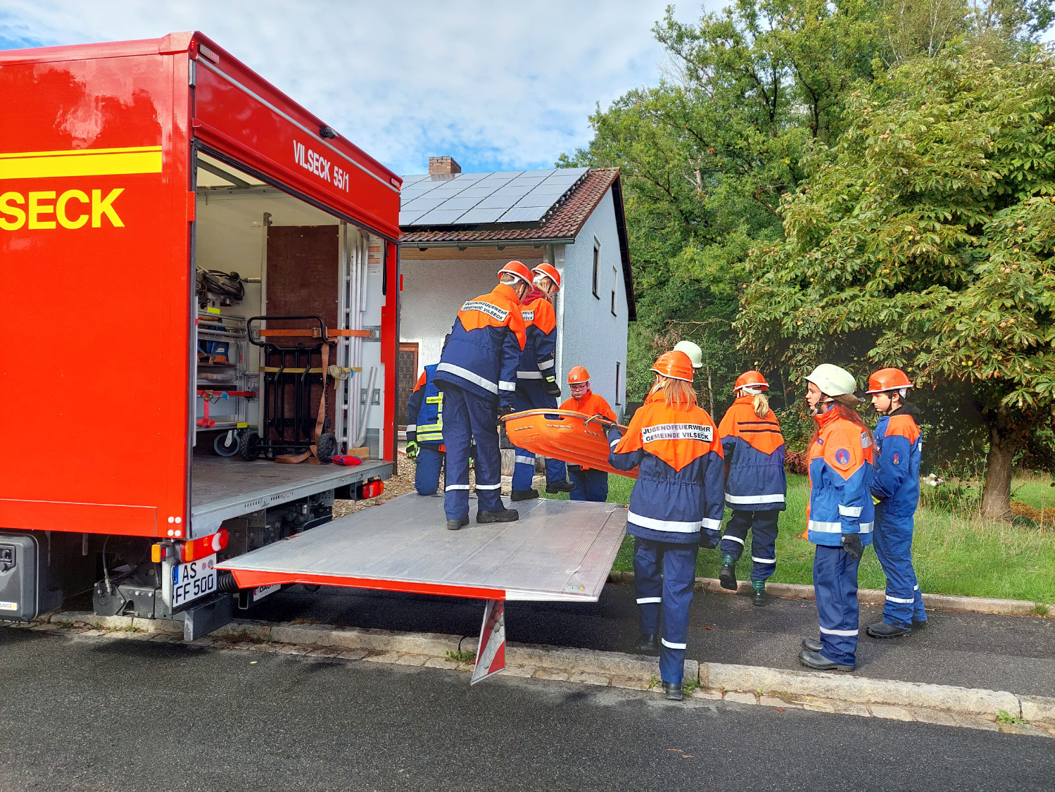 Am Samstag, dem 17. September 2022, trafen sich um kurz vor 08:00 Uhr knapp 20 Jugendliche und Ausbilder der Feuerwehren aus der Großgemeinde Vilseck im Gerätehaus der Feuerwehr Vilseck zu einer "24h Übung". Derartige Übungstage werden häufig auch als Berufsfeuerwehrtage bezeichnet, da sie sich grob am Arbeitstag einer Berufsfeuerwehr orientieren. Sie sollen einerseits das Gemeinschaftsgefühl stärken und andererseits durch die Kombination aus Ausbildung und Übungseinsätzen einen pädagogischen Lerneffekt vermitteln. Nach einer 12h-Übung im Jahr 2019 und zwei Sommerübungen in den Jahren 2020 und 2021 war die Freude bei den Feuerwehranwärtern groß, als in diesem Jahr wieder eine 24h-Übung auf dem Ausbildungsplan erschien.