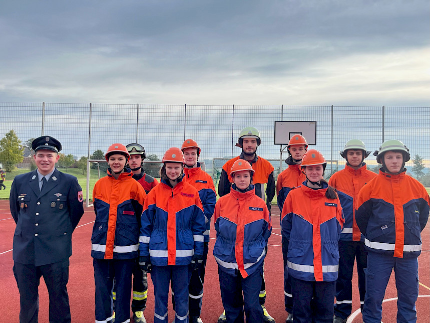 Unter der Leitung von Kreisjugendwart Sven Schmidt und dem Abnahmeberechtigten der DJF, Thorsten Brunner aus dem Landkreis Nürnberger Land, mussten die in den Richtlinien des Deutschen Feuerwehrbandes festgelegten 5 Disziplinen Staffellauf, Schnelligkeitsübung, Kugelstoßen, Löschaufbau und Fragenbeantwortung erfolgreich absolviert werden.