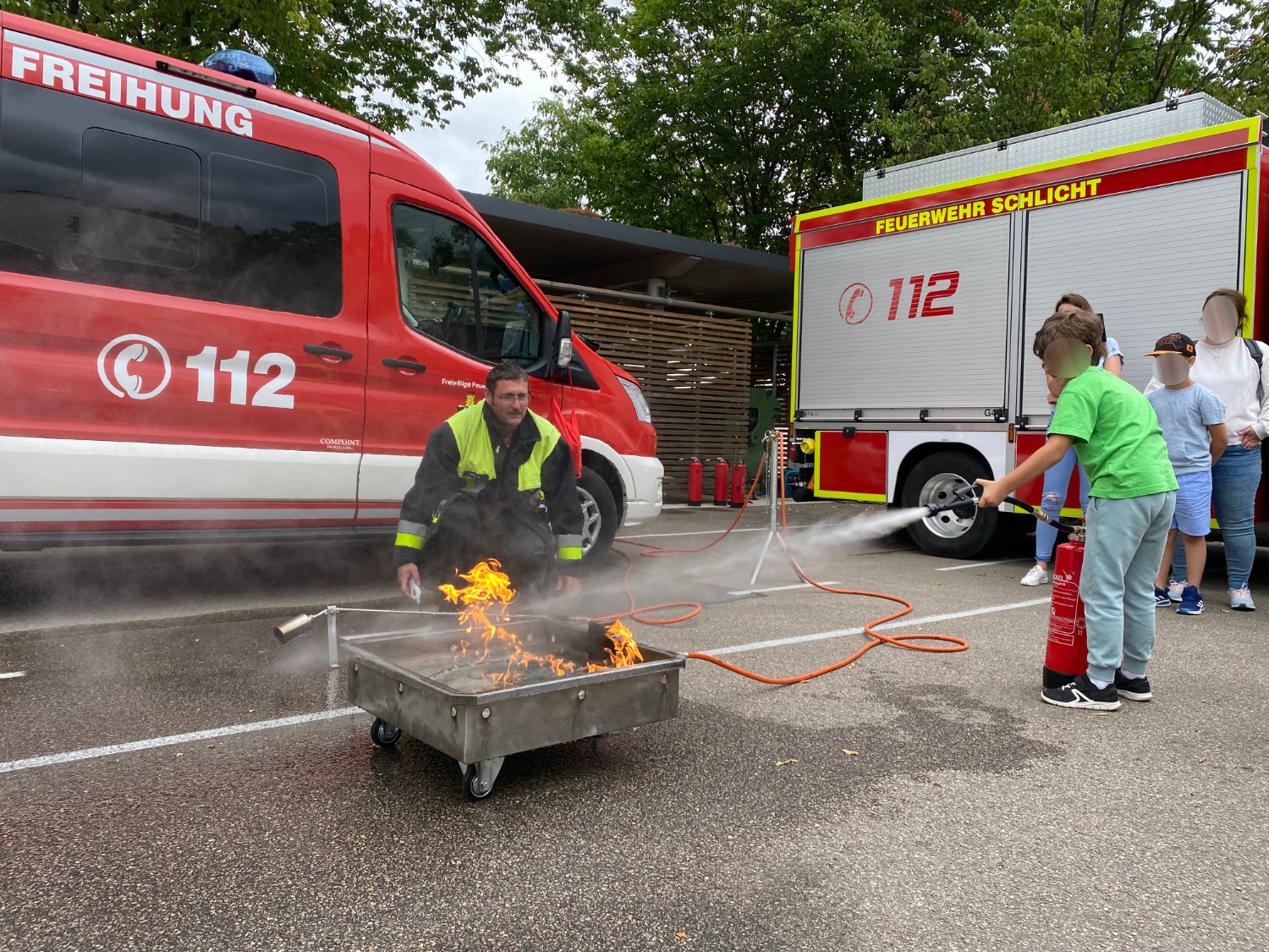 Echte Flammen gab es bei Richard, dem Jugendwart der Feuerwehr Freihung, zu sehen. Mit seinem Feuerlöschtrainer sorgte er für eine lange Schlange. In sicherer Umgebung und unter professioneller Anleitung konnten die Interessierten die Handhabung eines Feuerlöschers erproben und das Feuer löschen. Ein Erfolg mit Lerneffekt.
