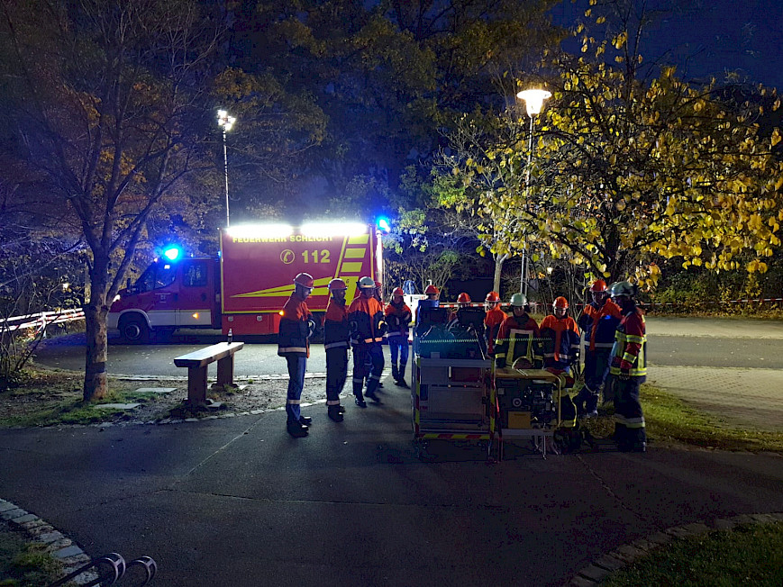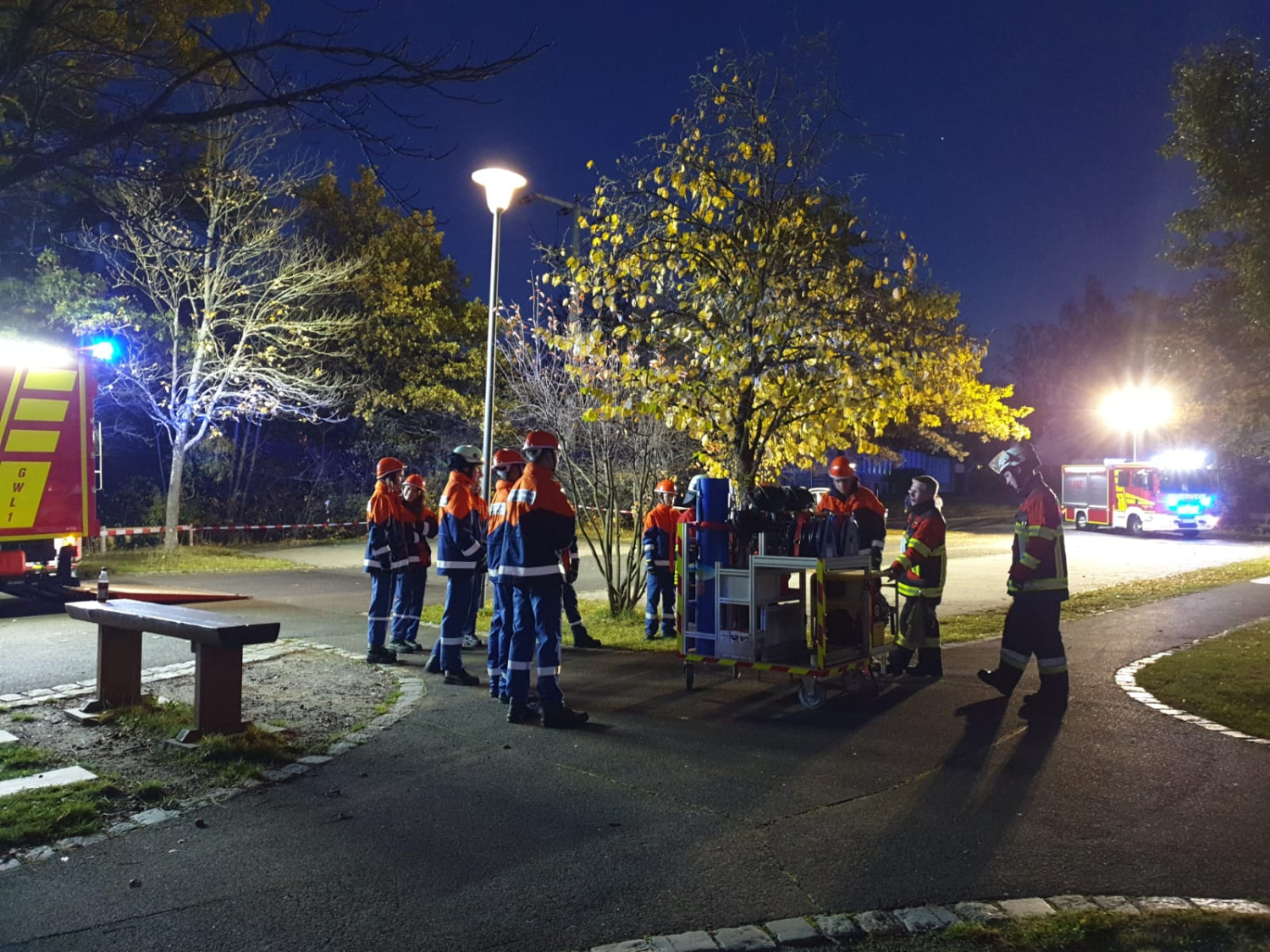 Unter der Leitung des Jugendwartes Anton Wiesnet und Kommandant Stefan Geier wurde angenommen, einen Landeplatz für den Rettungshubschrauber, kurz RTH, ausleuchten zu müssen.